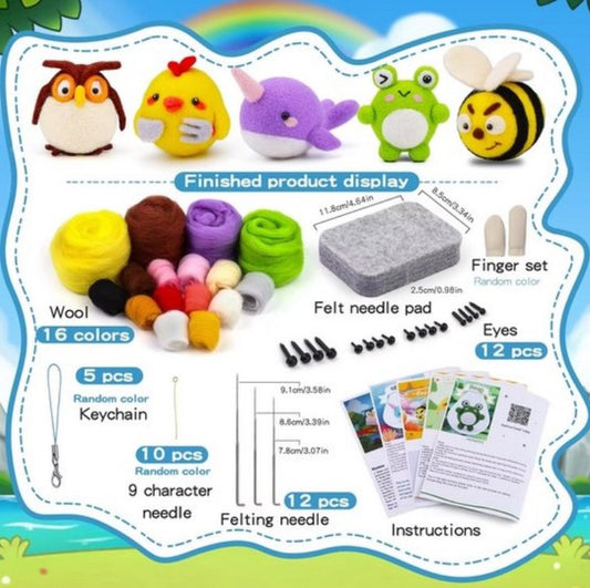 naaldvilten voor beginners - naaldvilt pakket stoere diertjes - naaldvilten voor starters - starterspakket naaldvilten - naaldvilten voor liefhebbers