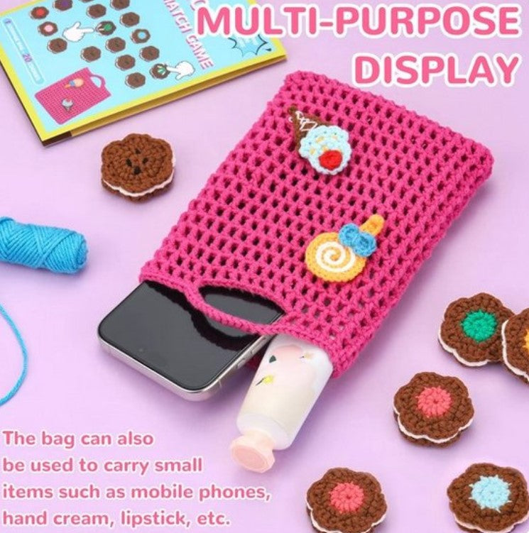 1 x Haakpakket Schattig Tasje + 20 Koekjes (inclusief garen, haaknaald, vulling en instructies)