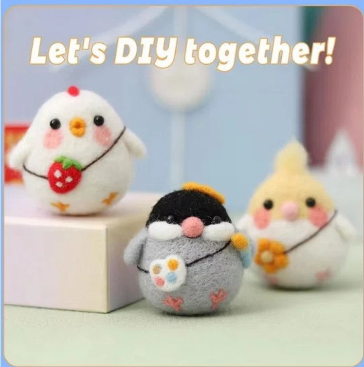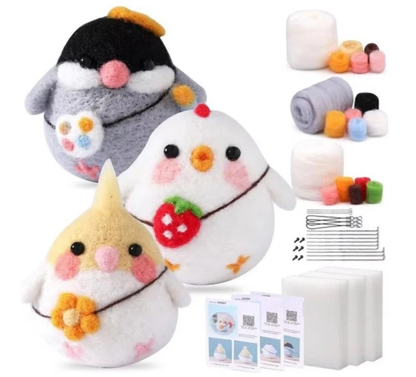 Maak je eigen schattige drie kippetjes met ons Naaldvilt Pakket!
